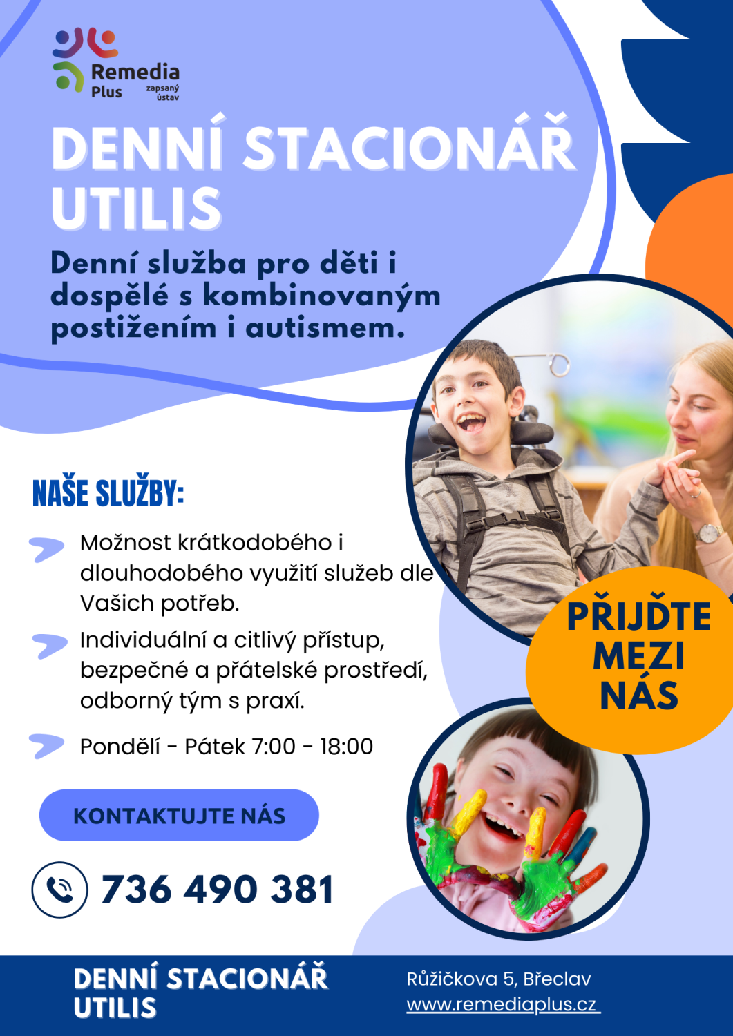Denní stacionář Utilis právě otevírá své kapacity pro nové klienty. Nabízíme odbornou péči, individuální přístup a podporu v přátelském a bezpečném prostředí.
